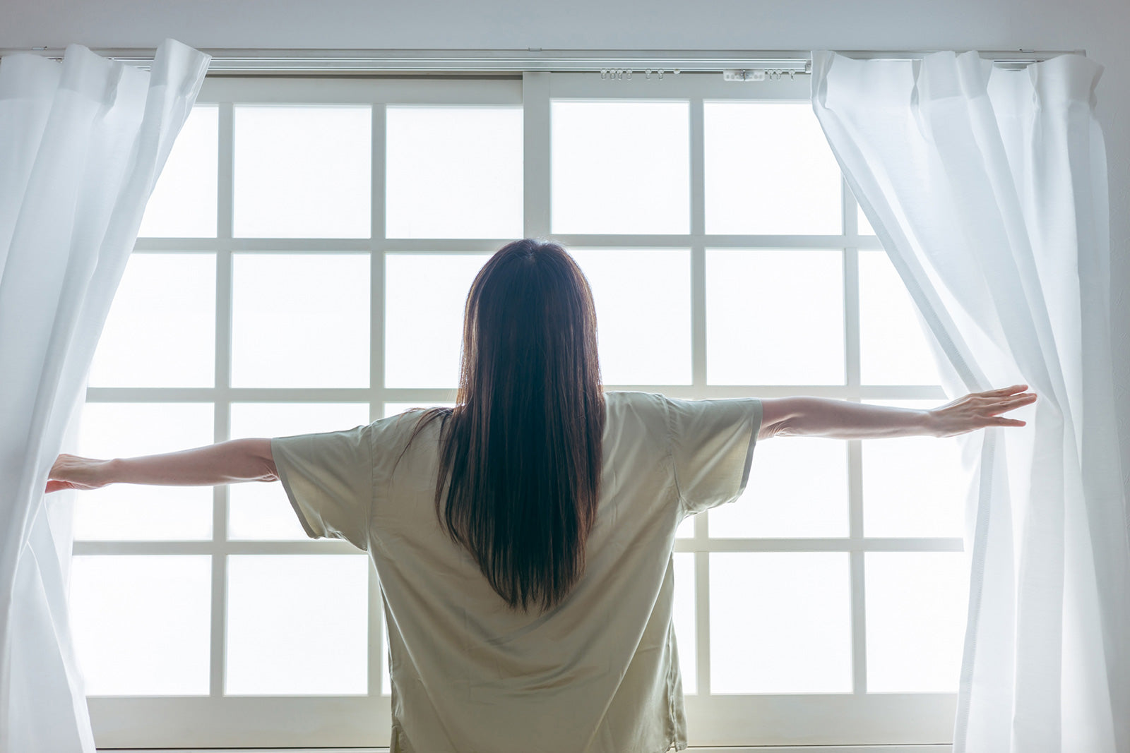 寝る前にカーテンを少し開けておく、または遮光性の低いカーテンを使用すると、朝の自然光が部屋に入り込み、目覚めやすくなります。人間の体内時計は、光を浴びることでリセットされるため、自然に起きられるでしょう。