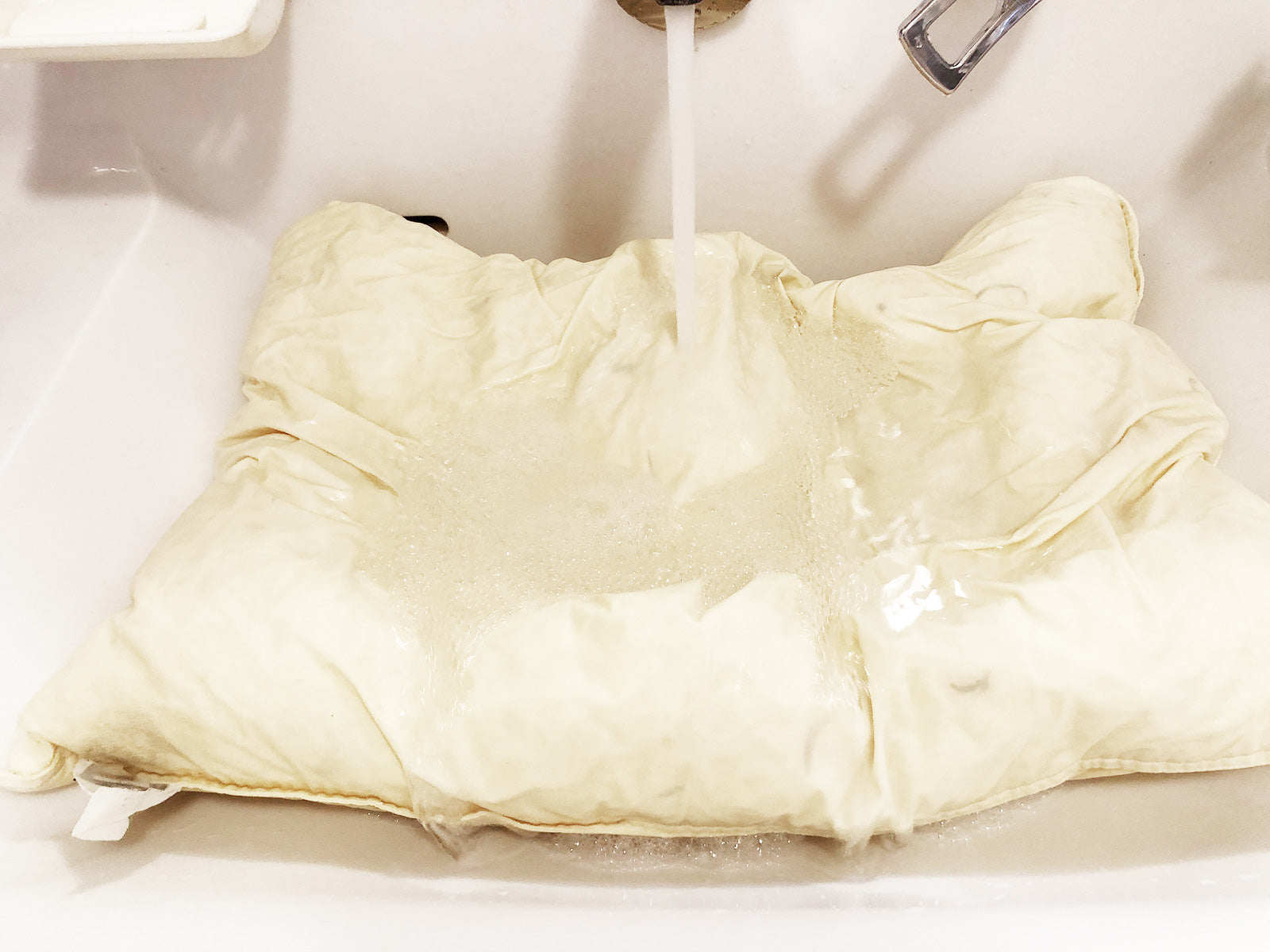 枕をネットに入れるのは、型崩れを防ぐほか、縫い目がほつれて詰め物が洗濯機内に散らばるのを防ぐことにもつながります。