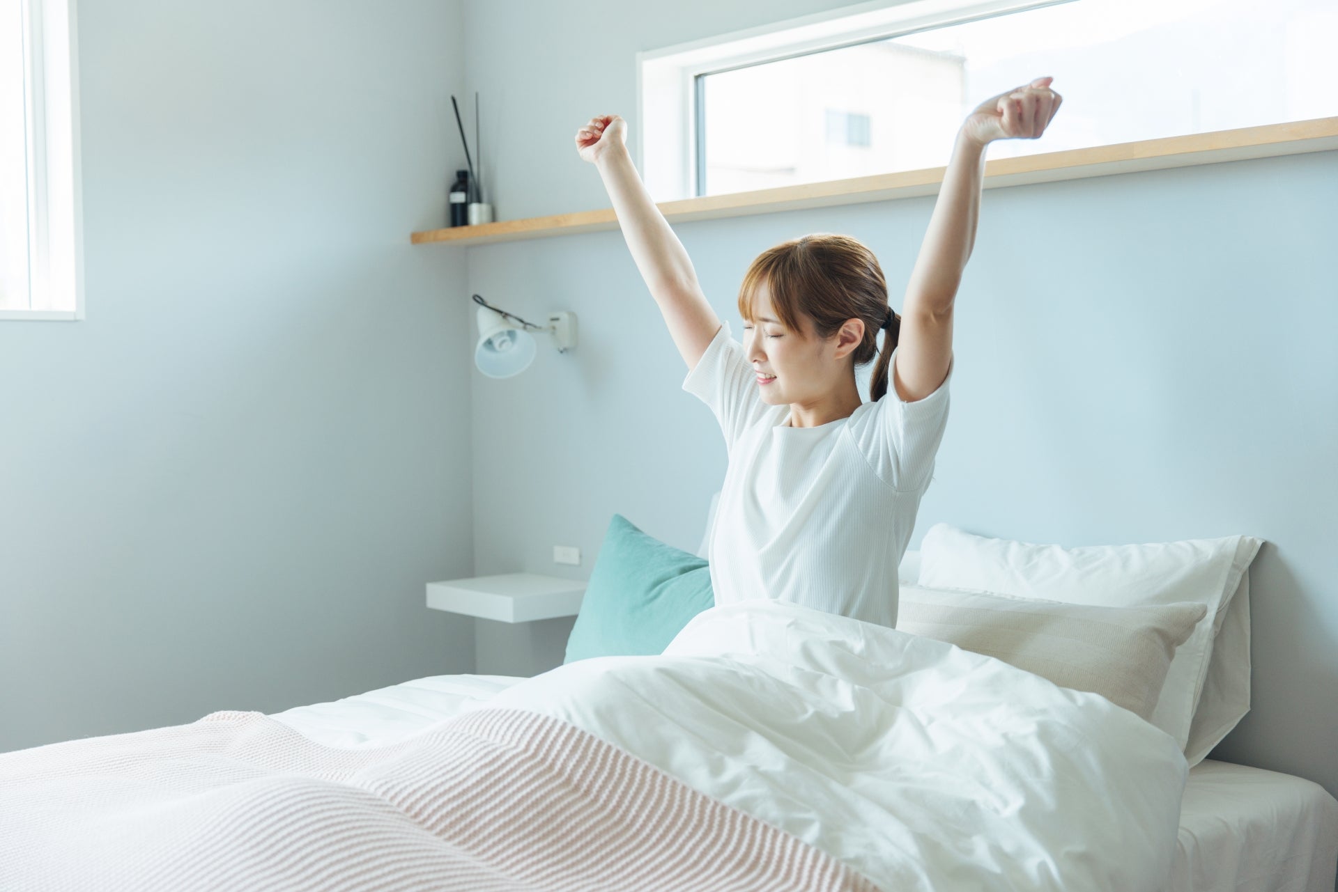 横向き寝やうつ伏せ寝は、肩や首に負担がかかってしまう寝方です。仰向けで寝ると、首や背骨を自然な状態に維持しやすく、体にかかる重力も分散できるためリラックスして眠れます。