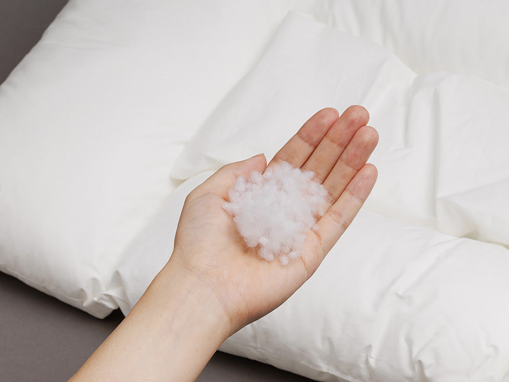 しっかりとした感触のわたをたっぷりと充填しているので適度な弾力があるやわらかさです。ソフトな反発力で頭と首を支え、スムーズな寝返りを促します。